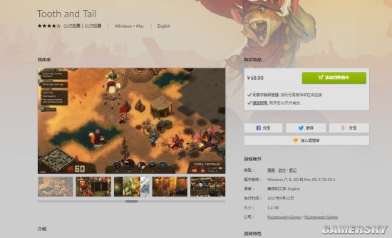 本作目前暂不支持GOG版与Steam版的联机功能,不过开发者承诺这一功能也已在开发中。《牙齿与尾巴》在GOG平台上售价为68元,感兴趣的朋友不妨入手一试。