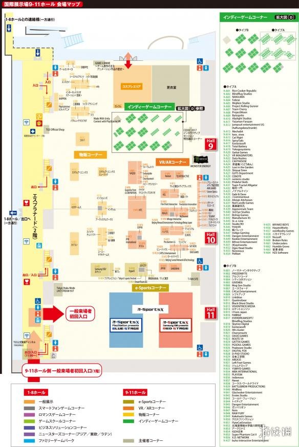 9厅:贩售区、Cosplay区(★)、独立游戏区、特别展示区、TGS官方商店