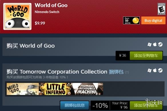 但这还不是最悲催的,最悲催的在于因为任天堂switch从未在中国大陆地区上市(负责贴纸的港任不提也罢)所以在其eshop并不存在国区这样的低价区。一款在steam平台仅售36元人民币的《粘粘世界》在switch美服eshop售价高达9.99美元(约合66元人民币)几乎高出了一倍,这还不论前者可直接使用支付宝付款而后者要通过信用卡或淘宝购买兑换点的方式付款。
