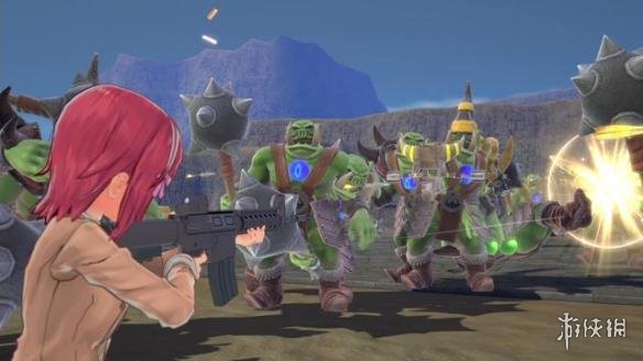 战斗舞台从学园转移至幻想世界,与大量逼近而来的半兽人及史莱姆等异世界的怪物展开激斗。运用枪抱及战车等近代兵器战斗!