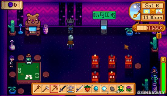 今日据百度贴吧网友爆料,腾讯TGP(现已全面升级成WeGame)版的《星露谷物语》更新后把沙漠赌场“和谐”了。不过这并非是把赌场整个给删掉了,而是把老虎机和赌台删了,你可以看看下图的对比。
