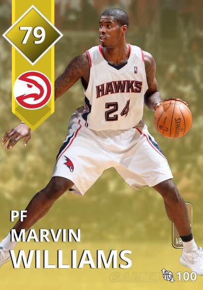 最后一张,这是张可能大部分人没发现的神卡,黄卡马文威廉姆斯,身高6尺9不算矮,重点是速度84、持球速度75、三分85、受干扰三分89,用了几场除了右侧45度以外,三分一大半能完美出手,手感爆炸,持球进攻效率也很高,而且这张卡在跑轰体系里有79的熟练度,缺点依然是防守,但无法影响这是一张性价比爆炸的卡。