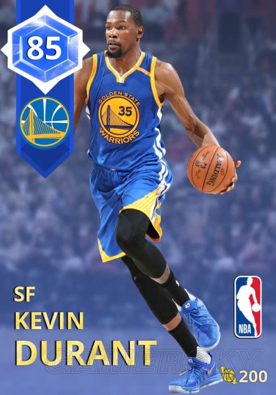 再说杜兰特,一开始看到这卡三分只给了75,很是费解,但实战之后才发现这张卡就一个字:稳,虽然2k只给了杜兰特6尺9的身高,但模型做的很写实、很高、胳膊长腿长(个人认为18进步最大的模型)可能是模型加三个投篮徽章的原因,这卡无论三分中投还是突破上篮,命中率远比数值显现得高,背身后仰特别好用,很容易绿,还是得益于模型,防守也没有数值那么弱,篮板也及格,放到大前打了几场有奇效。