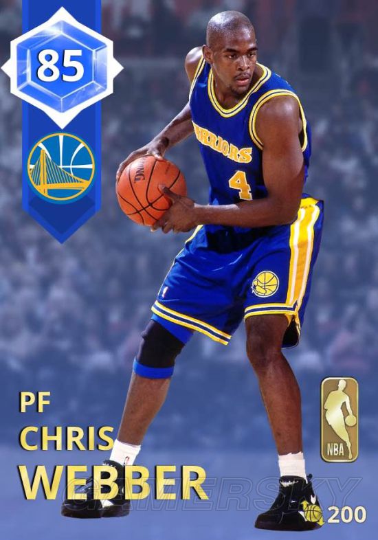 老实说没有我想象的好用,身高比上面两位略矮一点,无球速度很快,拥有外线的投篮包,十分顺滑,这都是韦伯的特点。但是,为什么持球速度只给了52,那要你70的控球有何用,罚球也只有53,三分67和ad差不多,内线进攻依然好用,防守在线,综合感觉不如AD,喜欢用韦伯这种全能大前的朋友可以再等等。