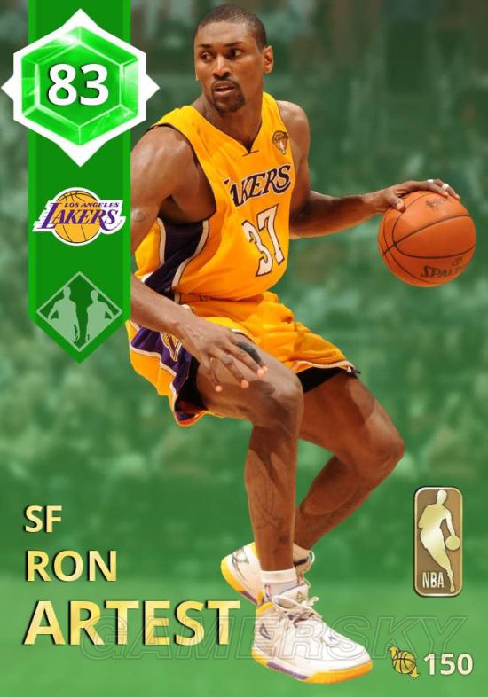 再提一张绿阿泰,和前面个人最喜欢的绿拜伦戴维斯可以duo,推荐这组duo,戴维斯中投三分全部上80,阿泰变成绿卡顶级3D,完美过度卡、速度快、防守狠,最难得还有81的地位防守,如果通关不想选紫阿泰的朋友可以考虑一下。