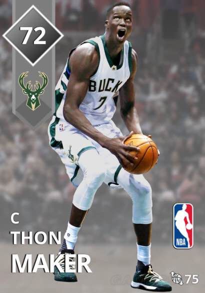 最想推荐的另一张神卡索恩·马克,去年一张绿卡炒到几万,今年这张银卡2k主播人手一个,也从来没有掉出过我的常用阵容,用了大概五十场,依然有场均9分和百分之七十的命中率,这张卡个子高(七尺1)模型更高,有70左右的三速和71的控球,应该是前无古人,还有80的三分,加上后卫的投篮包,得分易如反掌,防守方面略逊一筹,除了盖帽还行,其他得看脸,后场篮板抢的一般,但经常能抢到前场篮板,总之是一张你没有理由不买一张的卡。