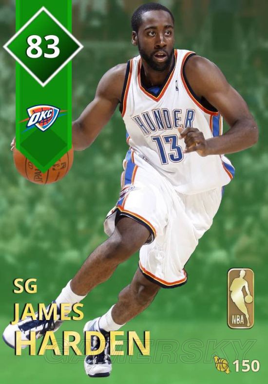 接下来就是重点了,这张绿卡哈登,相信有不少朋友已经发现了,这张哈登几乎全面超越了蓝卡哈登,甚至蓝哈登跟保罗duo了之后也数值也不如这张高,这张卡拥有将近90的三速和91的控球,加上哈登的控球包和节奏,突破快如狗,进去还有84的扣篮和80的造犯规、80的三分和中投配合顺手的投篮包很容易绿,就连防守也比蓝哈登高出一个档次,基本不漏人是现在终结能力最强的sg之一,而且价格只比蓝哈登贵一点,不知道2k怎么想的。