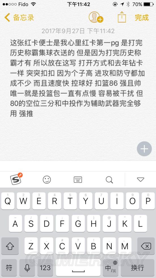 强推的黄卡,这张卡无形资产只有55,说明这卡至少有绿卡水平,看数值甚至比很多蓝卡都高,88的中投、86的三分堪比红卡、三速将近90。而且控球86、突破很轻松,防守也中规中矩完全不拖后腿,唯一缺点就是矮。