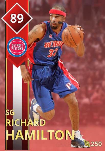 红卡就放一张,因为现有的红SG,基本都能被我马上要写的几张绿卡替代,这张红汉密尔顿和去年紫的福利卡差不多,投篮神准、中投全部90多、三分90左右,而且比一般的3D还球员高级,除了投篮准、防守硬之外还有80多的三速,虽然不能Speed Boost,但配合速度也能突破爆扣,算是现在SG里最全面的一张卡。