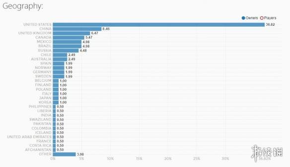 根据SteamSpy的数据,发售仅三天的《茶杯头》目前的销量位124540 ± 10355。而从地区分布来看,美国位居第一,占比高达36.82%。想来也是,游戏的美术风格就是20世纪30年代美国动画的风格,美国玩家的认同感想来也要更加强烈。