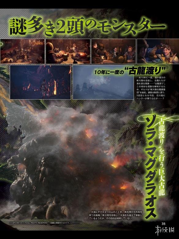 紧接着就是巨型古龙 熔山龙 “ゾラ·マグダラオス”。大约10年会出现一次从遥远的地方为前往新大陆而渡海的现象。为了解开这个奇妙的现象,公会成立了“新大陆古龙调查团”。