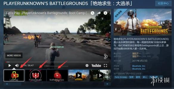 如果你满足以上的两个条件,安装这个插件后,你就可以直接在游戏的商店页面看到更多游戏实机演示视频了,大部分游戏则不需要再到其他的视频站搜实机演示视频。以下面的Steam上的《绝地求生:大逃杀》为例: