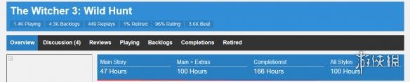 虽然在上面,我们已经提到了在Steam Enhance中很多游戏都有相关的信息显示,但这家网站提供的信息显然是更加全面。这是一个可以查看大量游戏各种游戏时长的网站。以下面的《巫师3》为例: