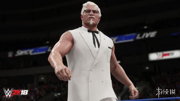世界摔角娱乐WWE与餐饮连锁品牌KFC合作,引发的结果就是那个慈眉善目的白发老爷爷哈兰·山德士上校也将成为可操纵角色登陆《WWE 2K18》,上校除了卖鸡块现在也能动手打人了!