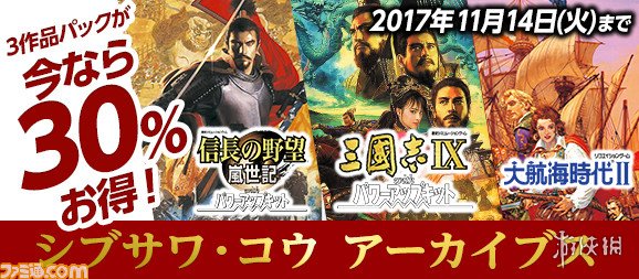 另外,在11月14前购买这三款游戏的话,将会享受30%的优惠,三款游戏的同捆包售价5980日元,优惠后售价4186日元。想回味光荣老作品的玩家千万别错过了。