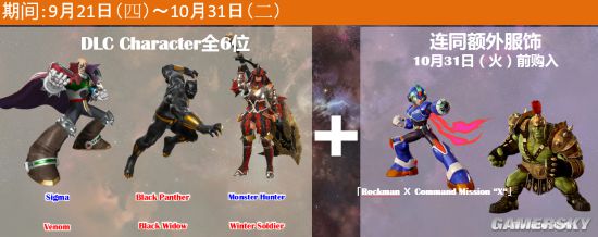 能够得到6位DLC角色的Character Pass。只要在10月31日(二)前购入,会追加2个额外服饰作为期间限定特典。分别是「Gladiator Hulk」、「Rockman X Command Mission “X“」!