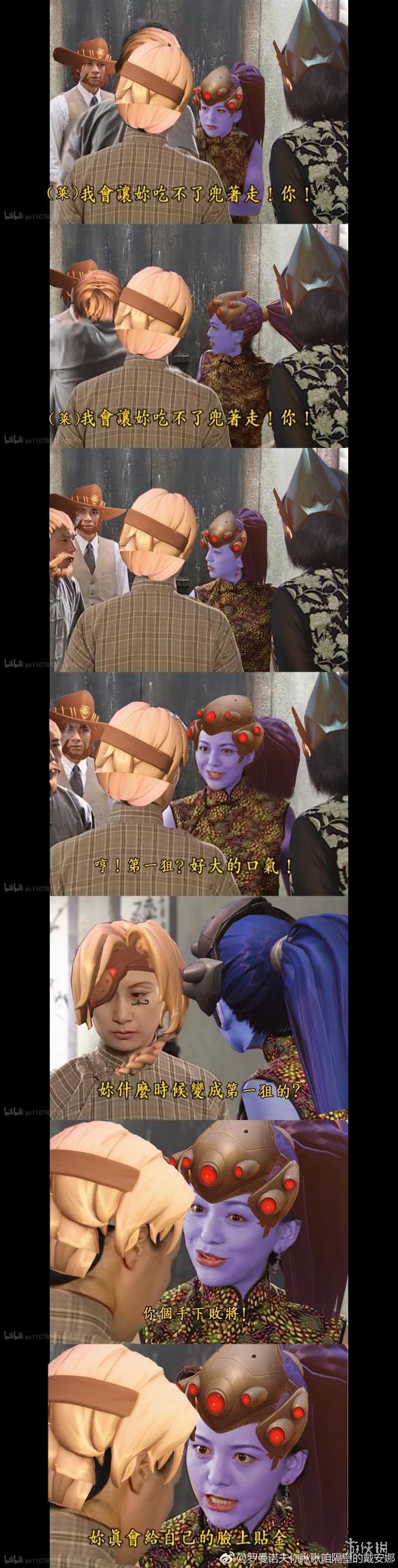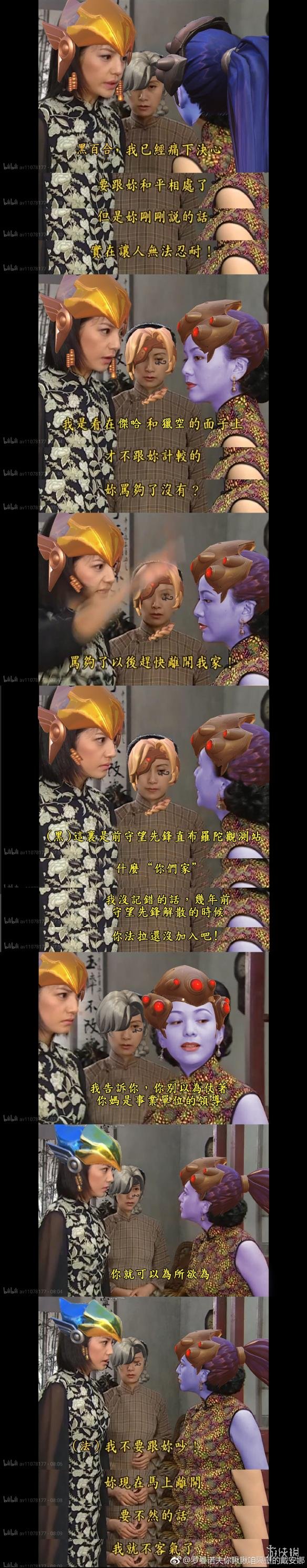 日前,来自《守望先锋(Overwatch)》的游戏粉丝@罗曼诺夫你瞅瞅咱隔壁的戴安娜在微博上发表了恶搞《守望先锋》的P图作品——《情深深雨蒙蒙•情在守望雨打先锋》第一集:直布罗陀黑百合单枪赴会来势汹汹,前守望先锋队员措手不及,无奈与黑百合争吵battle,法拉护妈心切欲嘴炮黑百合,岂料笨嘴拙舌反被黑百合diss。一经发表,就受到了不少粉丝们的追捧~