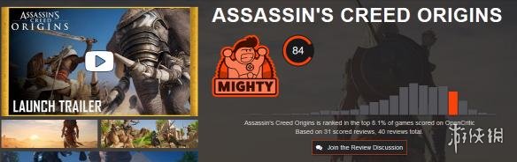 育碧时隔一年再次推出的刺客信条系列最新作《刺客信条:起源(Assassins Creed: Origins)》,游戏将在明日正式解锁发售,而游戏的媒体评测则在今晚解禁。目前游戏在OC上汇总的31家媒体评分的平均分为84分,游戏整体的媒体评测表现则算非常优秀:
