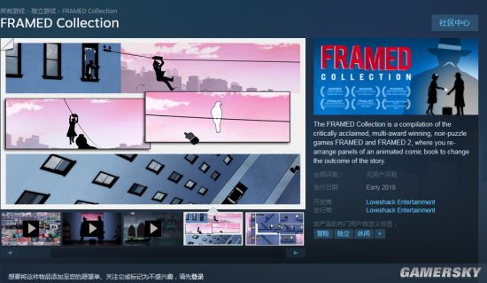这次上架Steam商店的为《致命框架:收藏版(FRAMED Collection)》,包含已经在手机端发售的《致命框架》和《致命框架2》。PC版将全面支持键鼠和手柄操作,支持Steam成就和可集换卡牌以及云端存档。售价暂未公布,游戏将于2018年初发售。