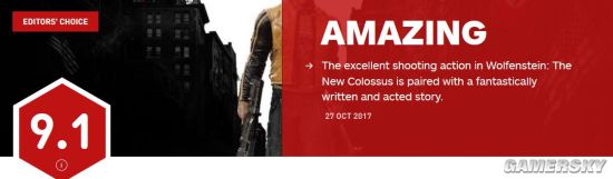 不只是玩家们喜欢杀纳粹,IGN也觉得《德军总部2:新巨人》很棒,并且给出了9.1的高分,IGN表示那些成就了“新秩序”优秀单人FPS的内容,如今在新巨人里又重演了一次,让人一见倾心的英雄和让人咬牙切齿的恶棍,交织成了这么一部反抗高科技纳粹的血腥篇章。