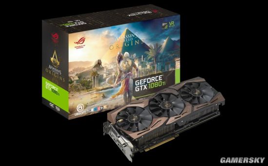 这款主题显卡以华硕为自家ROG STRIX GTX 1080 Ti OC显卡为基底,配上游戏主题褐色/金色涂装,背板上面还刻上了象形文字,充分利用了《刺客信条:起源》的元素。显卡还搭载了ASUS Aura Sync灯效技术,支持数百万种颜色和6种灯效供玩家根据自己喜好设定。