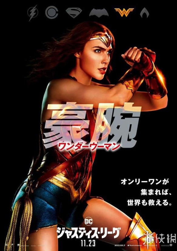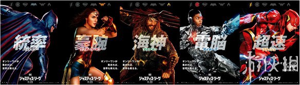 另外,日版发行方公开了全新角色海报,用日语汉字诠释了正义联盟成员的特点,蝙蝠侠“统帅”、神奇女侠“豪腕”、闪电侠“超速”、钢骨“电脑”、海王“海神”,不过独缺超人海报,不知超人会用什么词语表达。(这套海报为全球通用版,配以不同语言发行)。