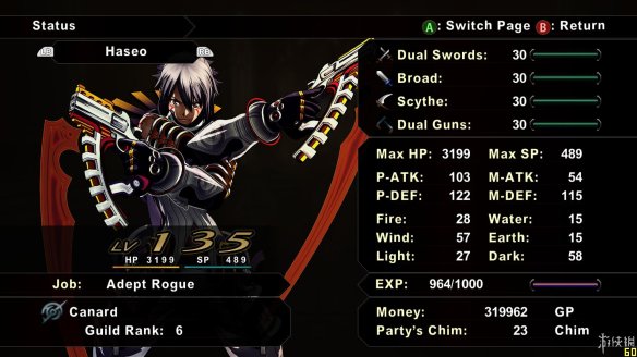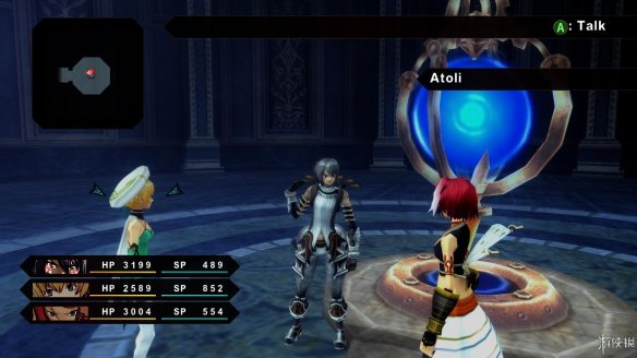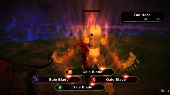 游戏中的敌人一般是站在地图上不会主动靠近玩家攻击,当靠近敌人范围时,可以选择按下攻击键进行先制攻击。战斗会在一个固定的区域里进行,在区域内可以自由移动角色,当角色头上有RB显示着时,按下RB就可以选择特技发动。发动一次特技后,头上会出现一条紫色的槽,槽加满之前是不能再发动特技的。