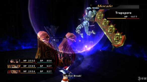 当玩家不断攻击敌人时,有时敌人身上和他的名字会变成紫色,这时候按下RB键发动特技,就能发动连击。连击效果比普通特技效果更华丽,战后也能获得额外经验值加成。屏幕的右上方有一根Morale槽,用连击打倒敌人后槽就会增加。当Morale槽加满后,就可以按下X键发动觉醒。而觉醒也有多种多样的效果,可以在菜单里选择自己需要的觉醒效果。
