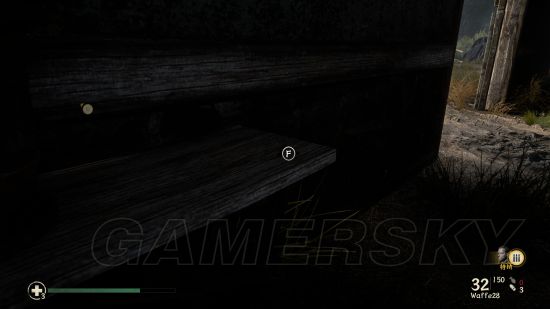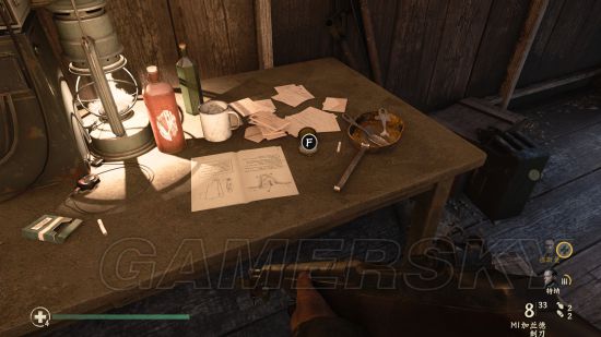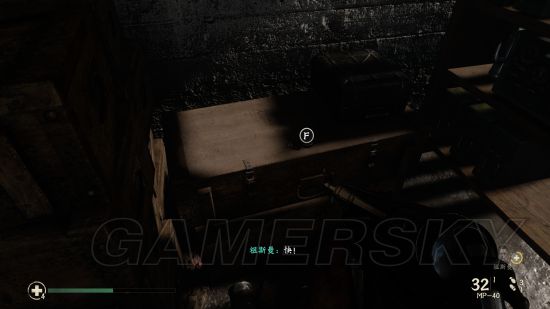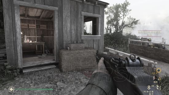 在前往摧毁高炮的路上,见到第一个杂物木屋后进入,