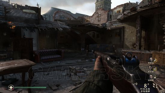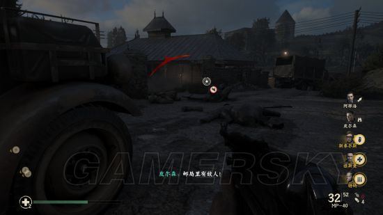然后在二层可以利用地形消灭一波敌人,打完装甲车之后下楼,触发队友倒地,