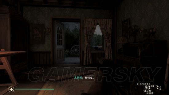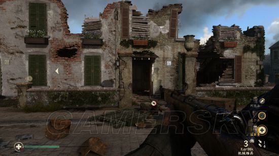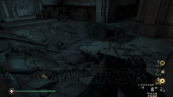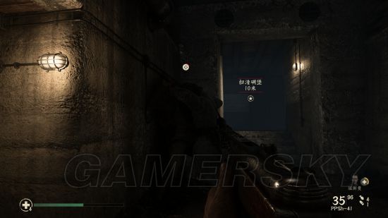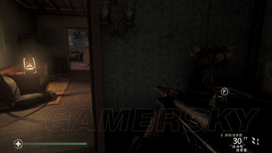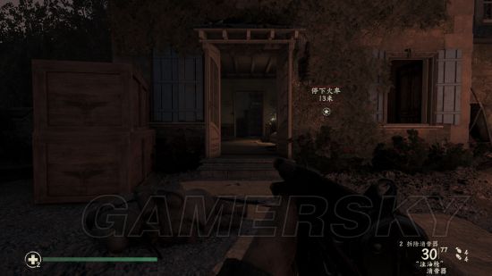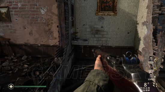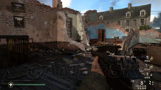 继续潜行穿过一片德军聚集地后进入另一座房子,进门直走到头,