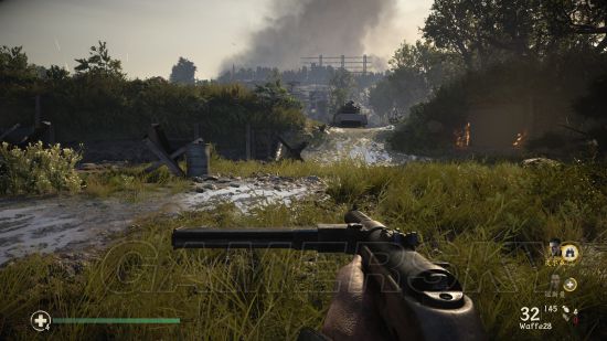 在与坦克部队一起进攻对方阵地时,跟随从左往右数第二辆坦克,就可以发现在最左侧的机枪碉堡内