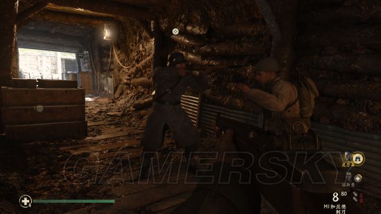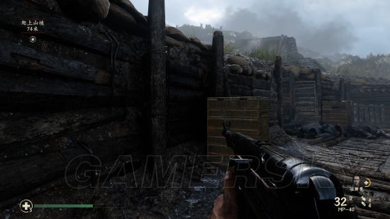在炸开铁丝网跳进战壕后,顺着这一条战壕走到尽头,右拐。