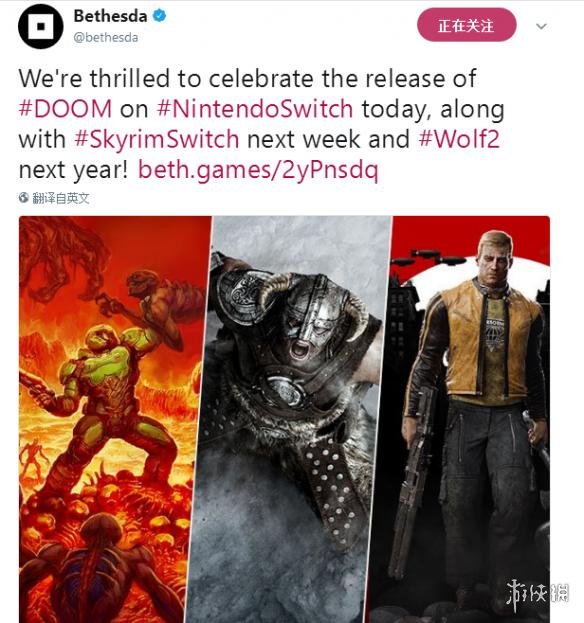 在相关的推特中B社表示:“今天,我们非常高兴《毁灭战士4》在任天堂的Switch平台发售了,在接下来《上古卷轴5》将在下周登陆Switch,《德军总部2》将在明年登陆Switch。”