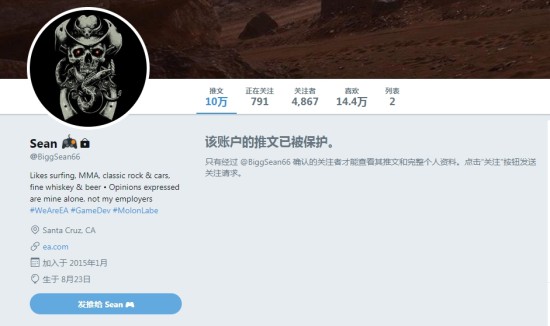 而有些过激的玩家将怒火烧到了开发人员的身上,EA开发人员Sean在推特上表示,“我收到了七次死亡威胁,超过1600次人身攻击。为什么?因为游戏中一个不受欢迎的功能。”而目前Sean的推特已经受到了账户保护,需要经过他本人确认才能进行关注和查看。