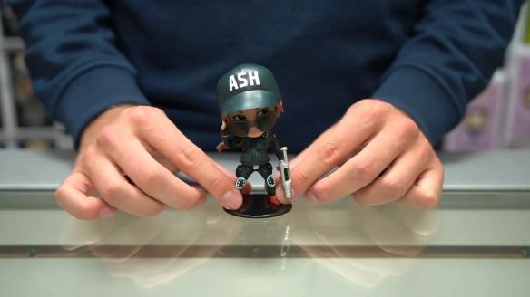 首批推出的手办是游戏中的进攻方干员:ASH、MONTAGNE(大盾)、IQ;防守方干员:TACHANKA(机枪哥)、SMOKE。昨晚育碧方面则公布了他们为这批手办上市制造的一部非常有趣的预告:
