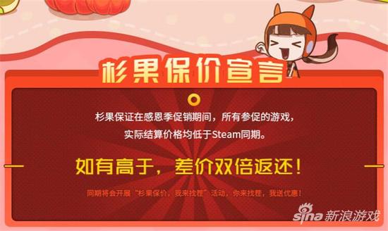 在折扣正式上线之前,国内零售商杉果游戏已经提前上线了预告页面,承诺黑五特惠期间所有参促游戏均比Steam国区便宜,还会为买贵了的玩家送上双倍差额返利。同时一批先行福利也已经出现在了页面上。