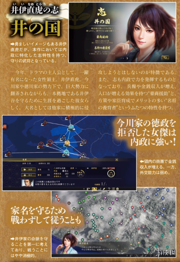 给人们有一种活泼印象的女性领主井伊直虎的志拥有可以强化内政的特性。