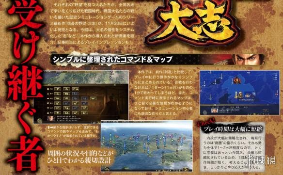 光荣tecmo在今日发售的日本著名杂志fami通上公开了预定11月30日发售的历史模拟游戏《信长之野望:大志(Nobunagas Ambition: Taishi)》的最新情报。本次介绍的是展示大名个性的系统“志”以及本作开始导入的新要素等内容。