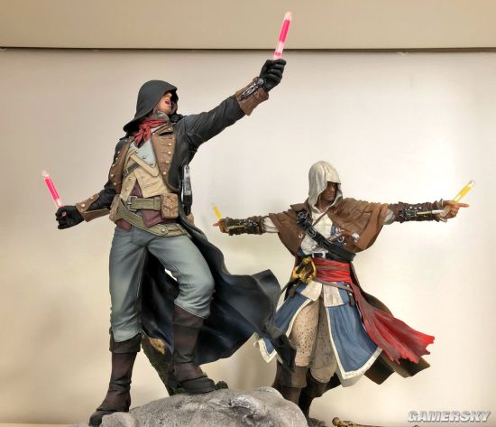玩家hrpk_imms买了几对发光耳环,灵机一动的他把耳环给《刺客信条》的手办戴上了,不过不是戴在耳朵上,而是让刺客们拿在了手里,这不就是传说中的打CALL棒吗?似乎能听到刺客们疯狂的打CALL声了…