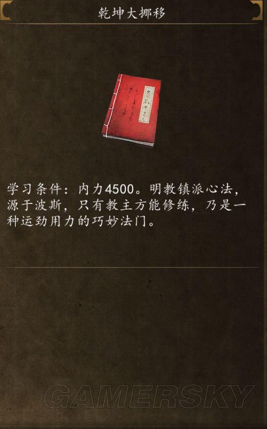 上头纪载。这错别字是要扣工资的。怪不得乾坤大挪移和圣火令没有出现。推测和乾坤大挪移一样跟景阳冈讲段子的大兄弟有剧情。上面记载的可能就是乾坤大挪移心法。本身效果不俗,神行饰品。不过改变不了梯云纵不够用的严酷事实。