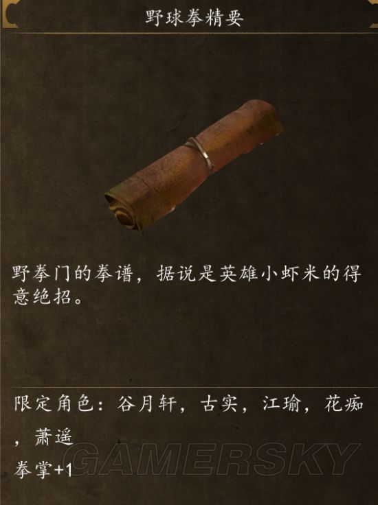 野球拳!小虾米荣誉出品。获得方式推测是在杜康村拯救完陆少镖头之后,在洛阳齐丽家找齐丽(整个前传唯一出现的一次,我齐丽剧情不可能这么少)至于威力请咨询圣堂十位便当众。