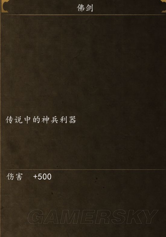 佛剑,攻击加成最高的武器,可惜连图片都没有。目测乐山大佛剧情可以得到。