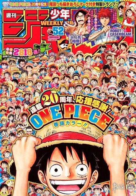 另外今期《周刊少年 JUMP》的封面同样配合《海贼王》连载20周年的主题,封面是由一百幅读者绘画的路飞头像投稿与尾田荣一郎绘画的路飞拼凑而成。