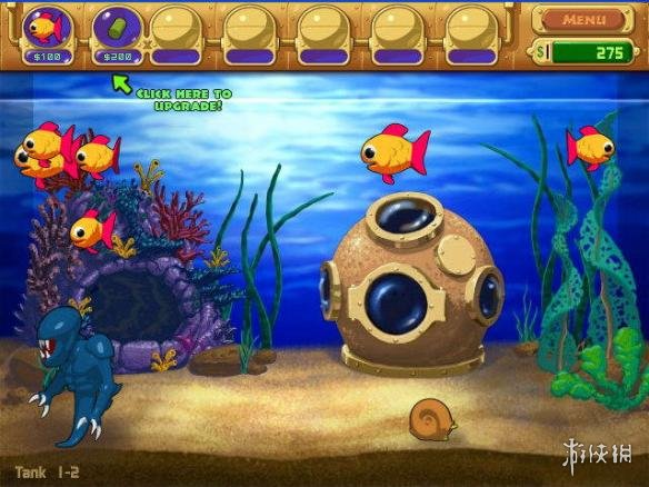 扔下一颗饲料,你的小鱼们要么吃掉它然后长大,要么没吃到只能翻肚皮。从最基本的层面来看,《怪怪水族箱》的重点仅仅是养鱼:这些只有装饰作用的水中白痴,似乎永远只知道吃。之后,你会得到一个帮你收集鱼儿掉落金币的蜗牛,一个帮助你抵挡传送过来外星入侵者的剑鱼,如果你不用激光干掉那些家伙,它们就会吃掉你的小鱼。《怪怪水族箱》让你享受了拥有鱼缸的乐趣并且可以大肆恶搞。