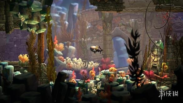 在《深海之歌》里,海洋如同一本童话书,寄居蟹的壳里会有商店,一个小怪兽希望成为你的朋友,你驾驶的,是一艘自制黄色潜水艇。但这可不是儿童游戏。它和《安琪拉之歌》一脉相承——地底通道被水流、石块或者胖河豚堵住,你可以用获取的升级物品来解决这些问题。这片海域像童话故事中一样,越深的地方风景越好,家长和孩子可以一起享受这款游戏的乐趣,彼此帮助,解决谜题和各种boss。