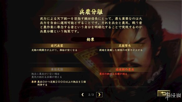 当然,“志”系统如果要我做出一个通俗的理解,其实很像是一些战旗游戏中存在的派别天赋。例如因勇武而获得了“鬼岛津”名号的岛津义弘,他的“志”能够赋予自己的加成基本都是在正面作战时获得优势,如士气提升、部队攻击力上升等。而这份赋予同时也会带来农民与足轻死亡率上升的负面效果;织田信长的“天下布武”志,则能够赋予他[兵农分离]以及[乐市乐座]的独特特性,以在***与发展方面取得先机。