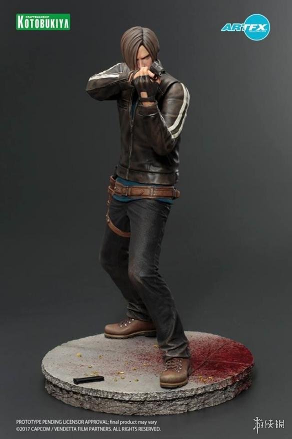 两款手办中,克里斯和里昂均双手持枪作瞄准预备射击状,而克里斯更是全副武装,两人脚下均是一摊血迹。