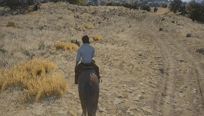 然后就出现了上面的一幕,这倒霉鬼就这么从马上摔下来被陷阱弄死了,造型十分诡异,陷阱并没有拆除选项,只好祝后来人好运了。然后他去接了一个通缉任务,警长给你了任务,你出门就看到了目标,然后开枪突突死,回去领奖励,整个过程十分鬼畜且诡异。