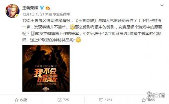 《王者荣耀》官博发文称将要和超人气IP联动,引来玩家们热情猜测。